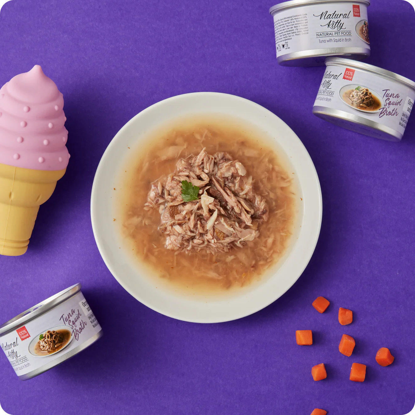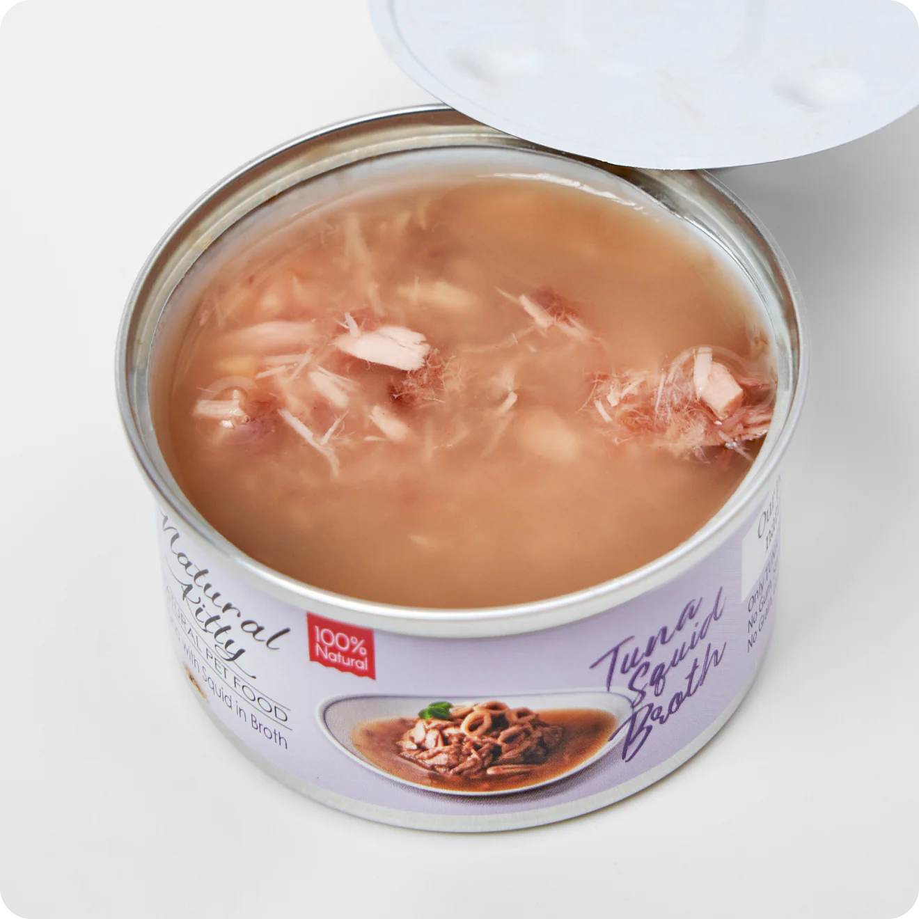 Поживна консервована їжа для котів з тунцем і кальмарами у бульйоні, 80 г. Підтримує водний баланс, загальне здоров’я та апетит кота. Натуральні інгредієнти та ніжна текстура роблять її привабливою навіть для вибагливих у їжі котів. Ідеальна для щоденного харчування.