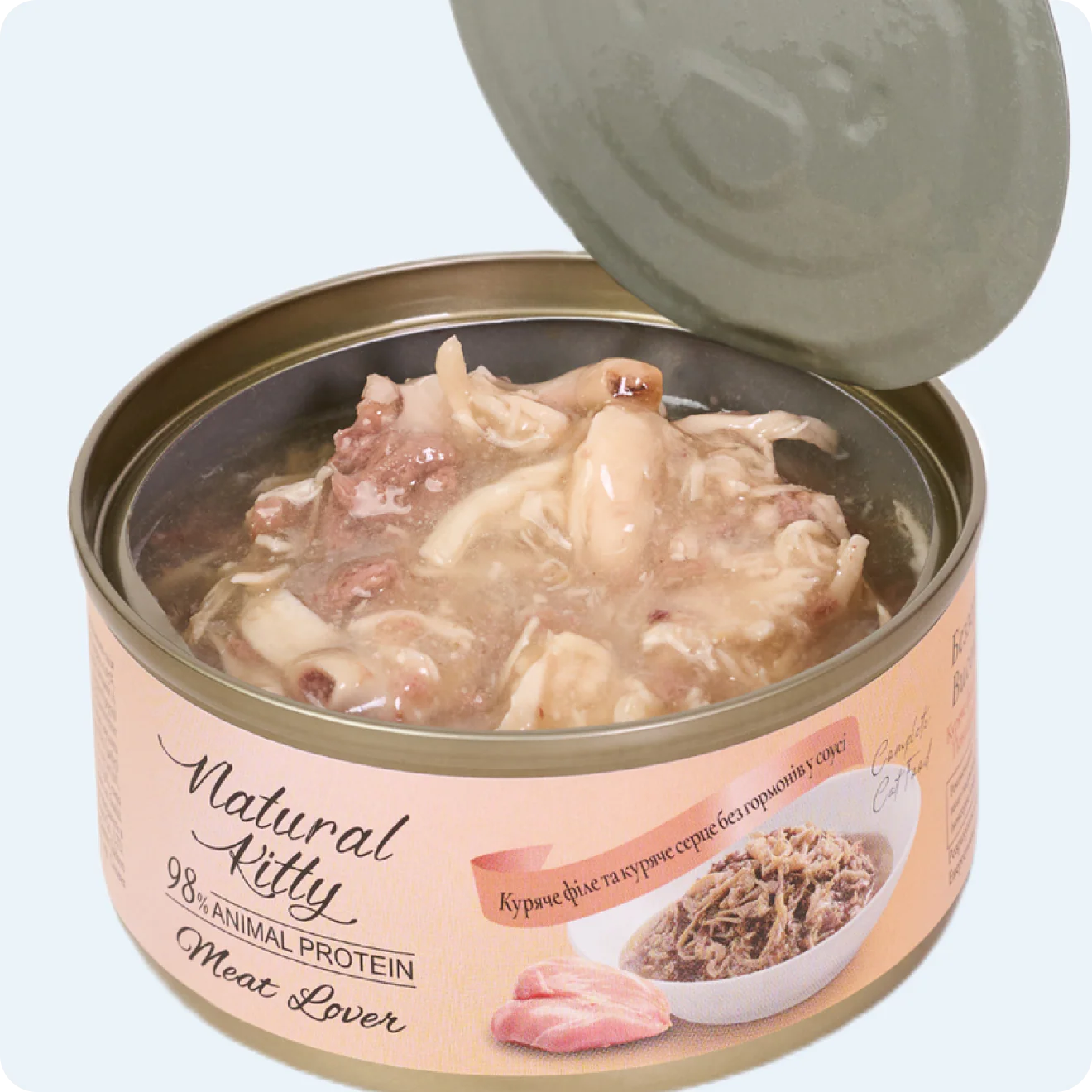 Консерва для котів Natural Kitty з курячим філе та курячим серцем у соусі 70 г