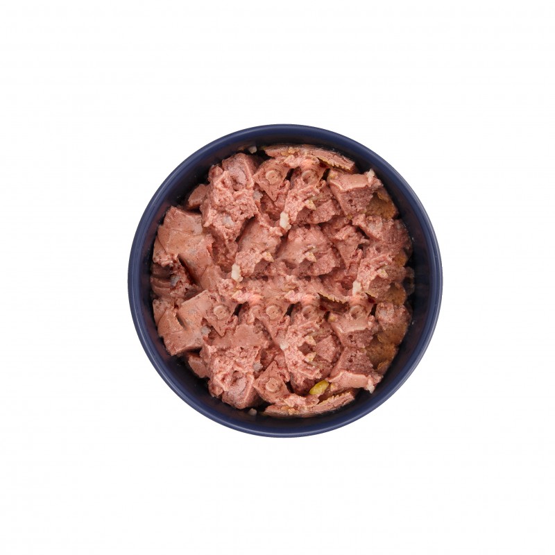м'ясо курки (95%), горох, рис, сушений цикорій, лососева олія, ФОС (фруктоолігосахариди), псиліум та насіння подорожника, МОН (мананолігосахариди), дегідрований гранат, дегідрована чорниця (0,03%), дегідрована ожина, дегідрована малина