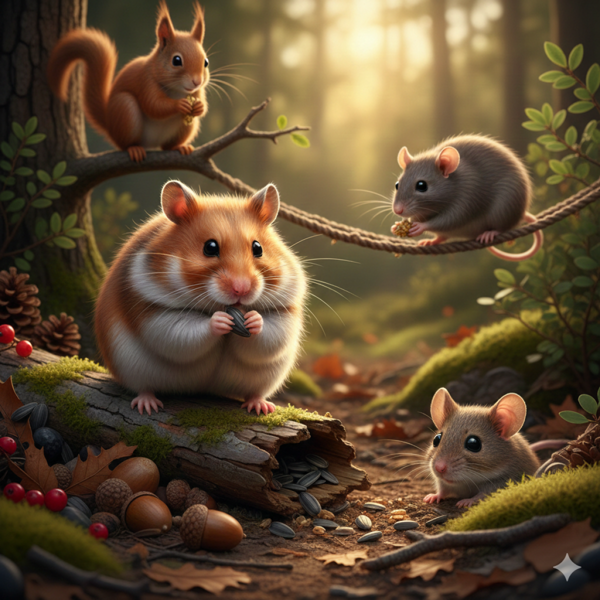 Для гризунів та птахів: Натуральні суміші добірних зерен, сушених трав, овочів та фруктів, що імітують природний раціон кроликів, шиншил, папуг та канарок.