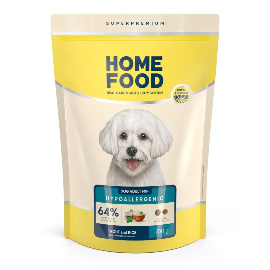 Гіпоалнергенний корм для дрібних порід собак з фореллю та рисом Home Food DOG ADULT MINI