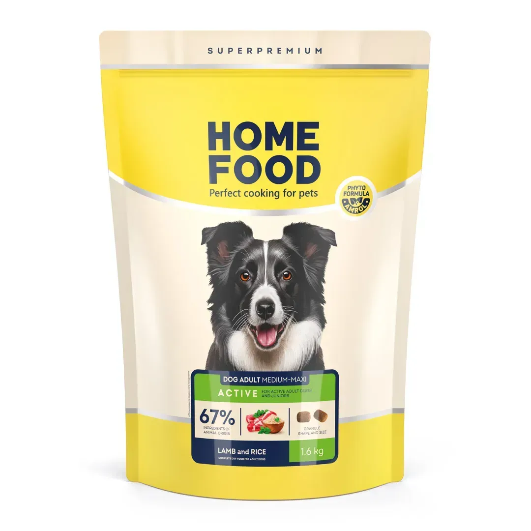 Сухий корм для активних дорослих і цуценят середніх та великих порід з ягням та рисом Home Food DOG ADULT MEDIUM/MAXI