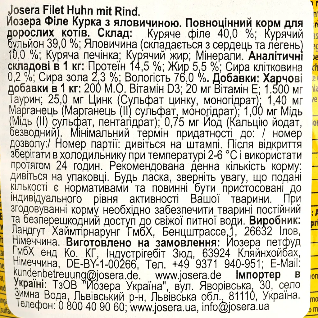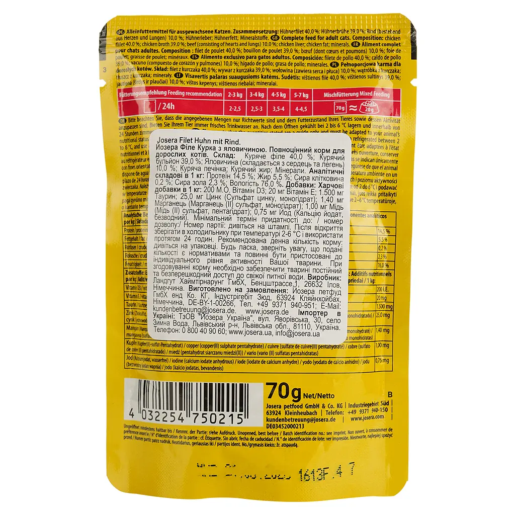 Вологий корм для котів Josera філе курки та яловичиною Josera Filet Huhn mit Rind 70 г