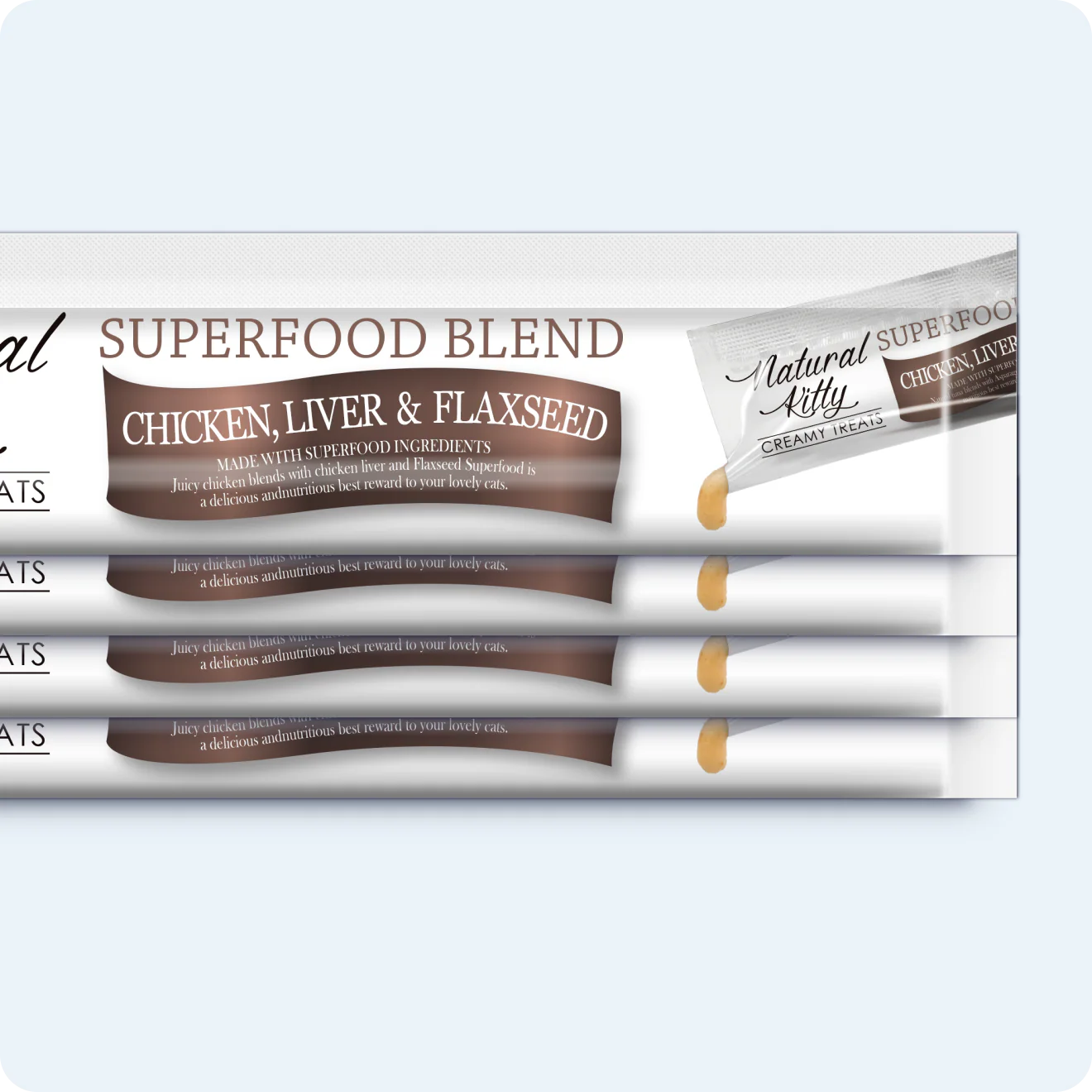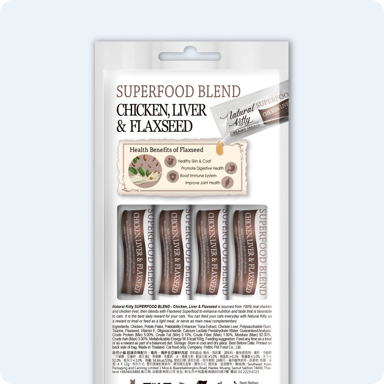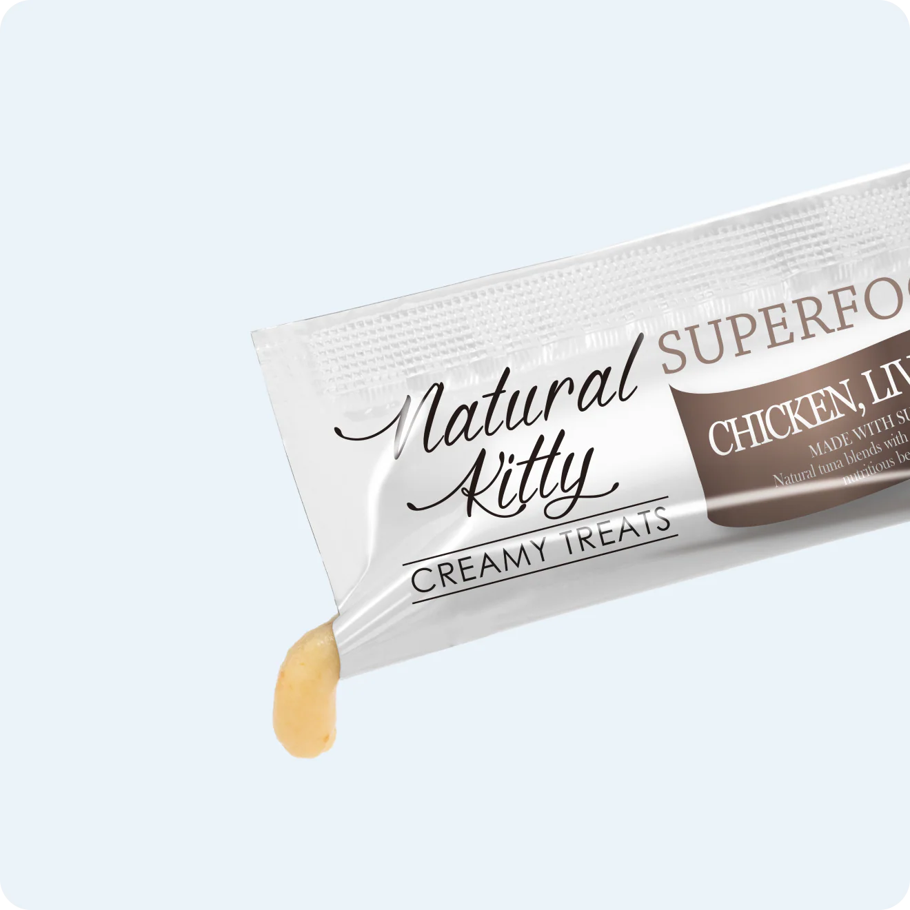 Кремовий смаколик для котів Natural Kitty SuperFood з куркою, печінкою та насінням льону