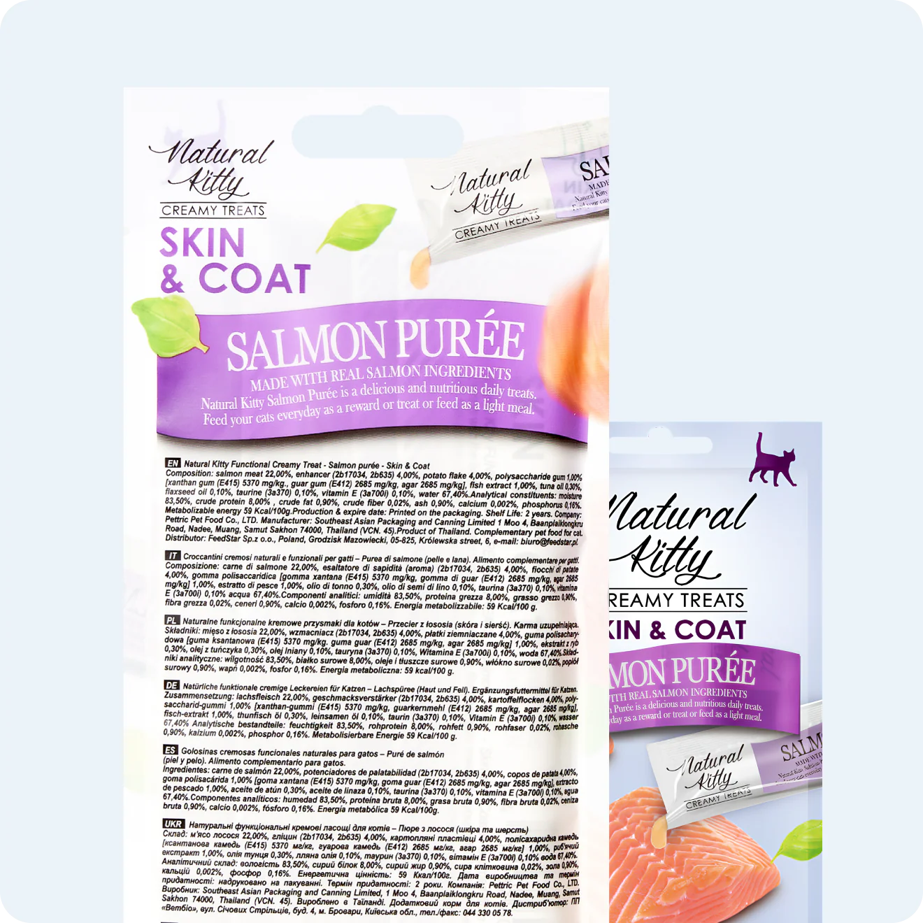 Кремовий смаколик для котів всіх порід Natural Kitty SKIN and COAT, здорова шкіра та блискуча шерсть з лососем