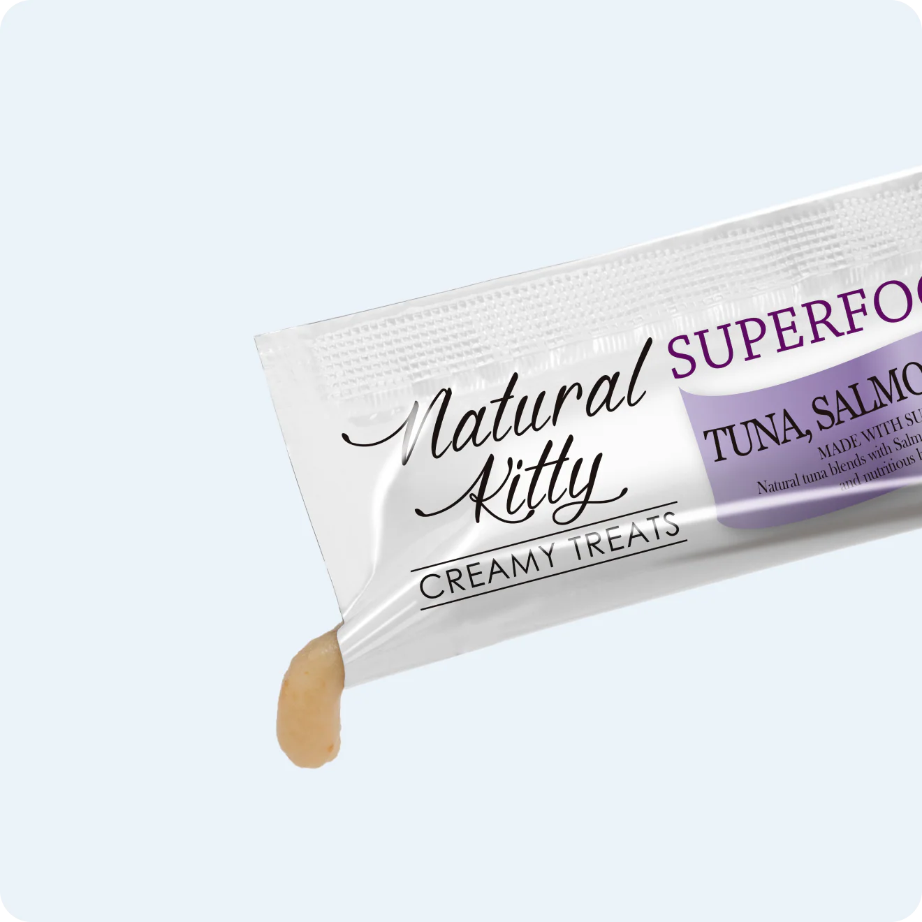 Ніжний кремовий смаколик для котів Natural Kitty SuperFood з тунцем, лососем та чорницею