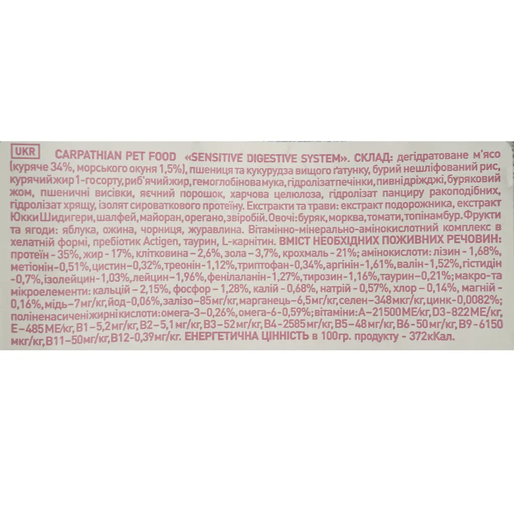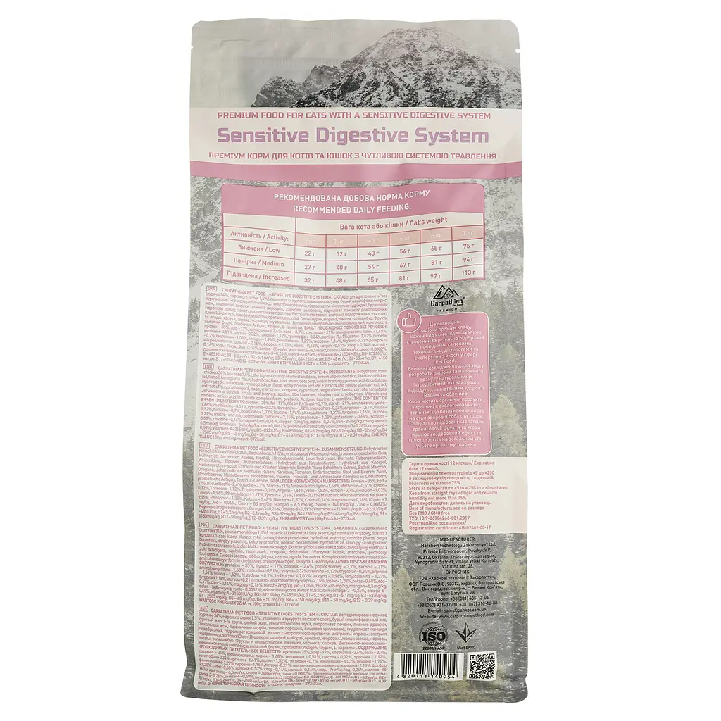 Сухий корм для котів з чутливою системою травлення Carpathian Pet Food Sensitive Digestive System з куркою та морським окунем