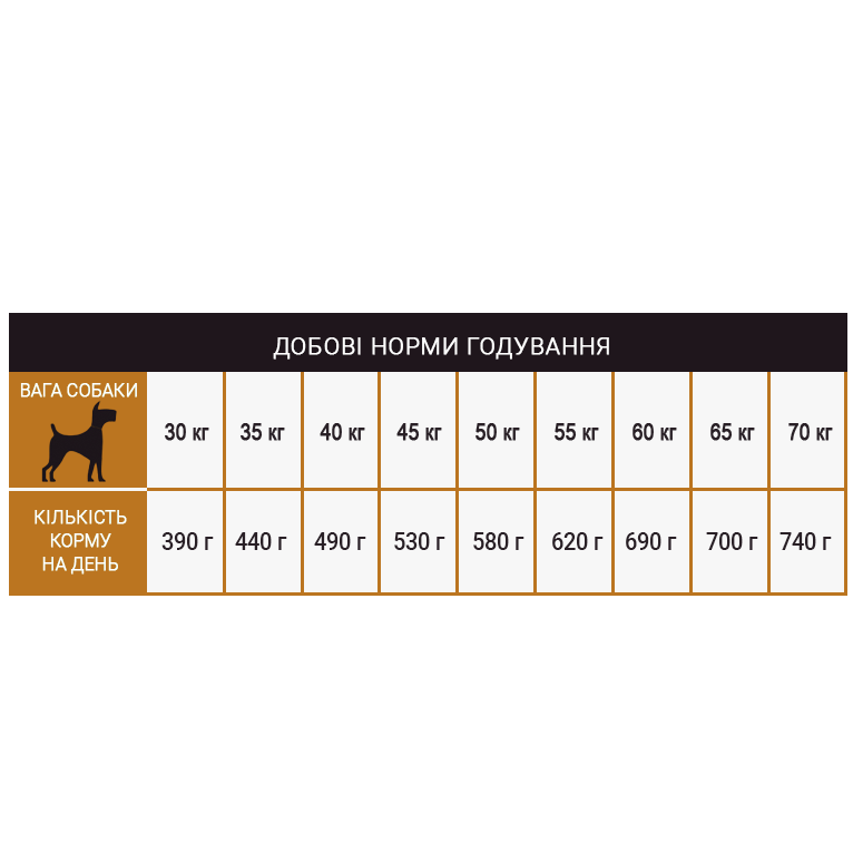 АНАЛІЗ СКЛАДУ: протеїн – 26%, жир – 14%, клітковина – 2.9%, зола – 5.5%, вологість – 9%, кальцій – 0.86%, фосфор – 0.7%, магній – 0.14%, натрій – 0.19%, калій – 1.43%, Омега-6 – 2.62%, Омега-3 – 0.42%.