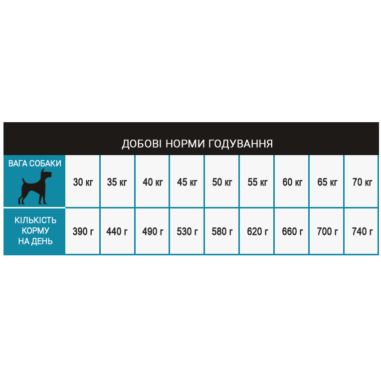 АНАЛІЗ СКЛАДУ: протеїн – 26%, жир – 14%, клітковина – 2,9%, зола – 6,2%, вологість – 9%, кальцій – 1,58%, фосфор – 1,28%, магній – 0,15%, натрій – 0,56%, калій – 0,48%, Омега-6 – 2,29%, Омега-3 – 0,52%.